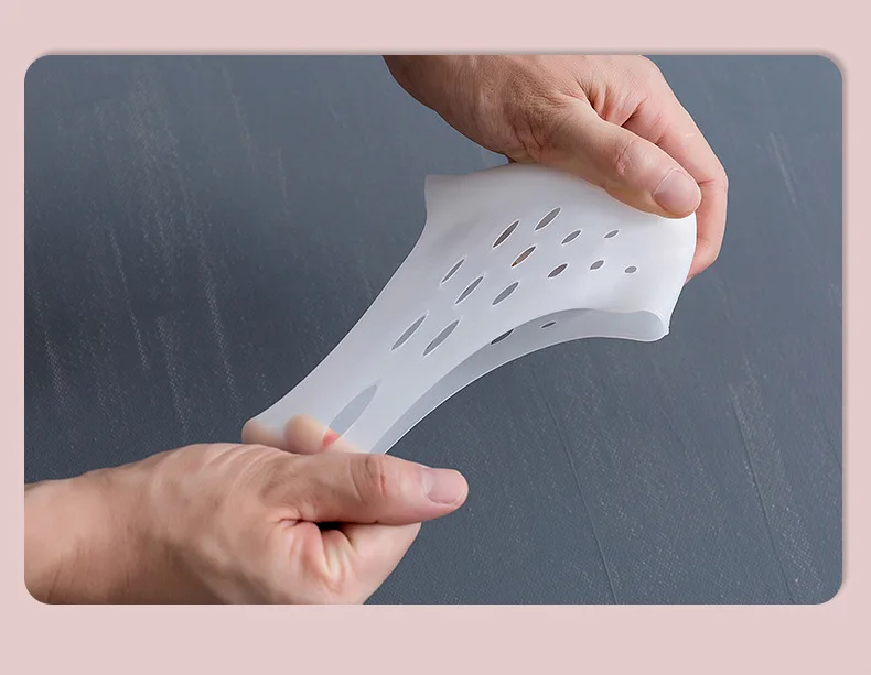 👟 Invisible & Comfortable  • Made from premium-grade silicone that feels soft, breathable, and skin-friendly.  • Designed to stay secure inside your shoes — no slipping, no gapping.  • Stretchable and cushioned to reduce heel pressure and daily fatigue.